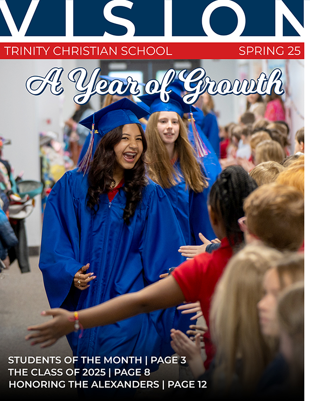 Trinity Christian School About Head of School Welcome Mission and Vision Statement of Belief Statement of Purpose Non-Discrimination Policy School History School Board Spiritual Emphasis School Report Cards Testimonials VISION Magazine Faculty & Staff Employment FAQ Sponsors Donations Admissions Trinity Christian Preschool Classes and Locations Contact Preschool Registration Curriculum Faculty & Staff Care Before and After School for Preschoolers - C.A.P. Trinity Christian School K-8th Tuition Tuition Assistance Family Referral Program Before and After School Care Visit our Campus Apply Today Academics Academics Accreditation Curriculum Overviews Support Services Elementary School Specials Middle School Electives Student Council ACSI Student Activities Athletics Athletics Robotics Teams Summer Camps Arts Arts Ribbon Dance Heartsong Band K-4 Christmas Production Spring Musical Community Community At A Glance Calendar Community Events Parent Resources Spirit Gear Volunteer Opportunities PTM Hot Lunch RaiseRight Bless Our Teachers Facility Rental Alumni Christmas Craft and Vendor Fair VISION Magazine Home / About / VISION Magazine VISION MagazineVISION is a publication that highlights the mission and vision of Trinity Christian School in action. Check out the latest issue below! 2025-2026 Back Issues 2024-2025 2023-2024 2022-2023 Head of School Welcome Mission and Vision School Board Spiritual Emphasis School Report Cards Testimonials VISION Magazine Faculty & Staff Employment FAQ Sponsors Donations